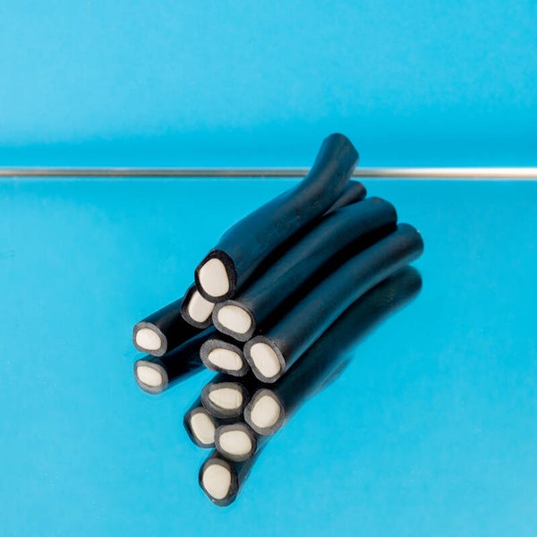 Salmiak: Zucker, Weizenmehl, Melasse, Glukosesirup, vegetarische Fette (Shea, Kokosnuss), Ammoniumchlorid, Lakritzextrakt, Gelatine, Salz, Farbstoffe (E150c, E153)